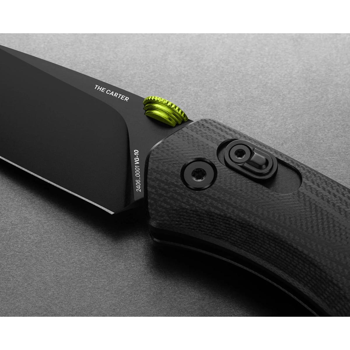 Featuring a slide-lock mechanism, a corrosion-resistant VG-10 stainless steel blade, fully-profiled G10, Micarta or carbon fiber scales and a deep-carry, reversible pocket clip, the Carter is the most advanced knife they’ve ever made. It's slim and lightweight, but fully capable in any environment. It's also fully ambidextrous, and the pocket clip can easily be removed. The thumb disc design means that the Carter is easy to use with one hand, so it's at the ready in all situations. The Carter is going to immediately earn its spot in your EDC rotation.