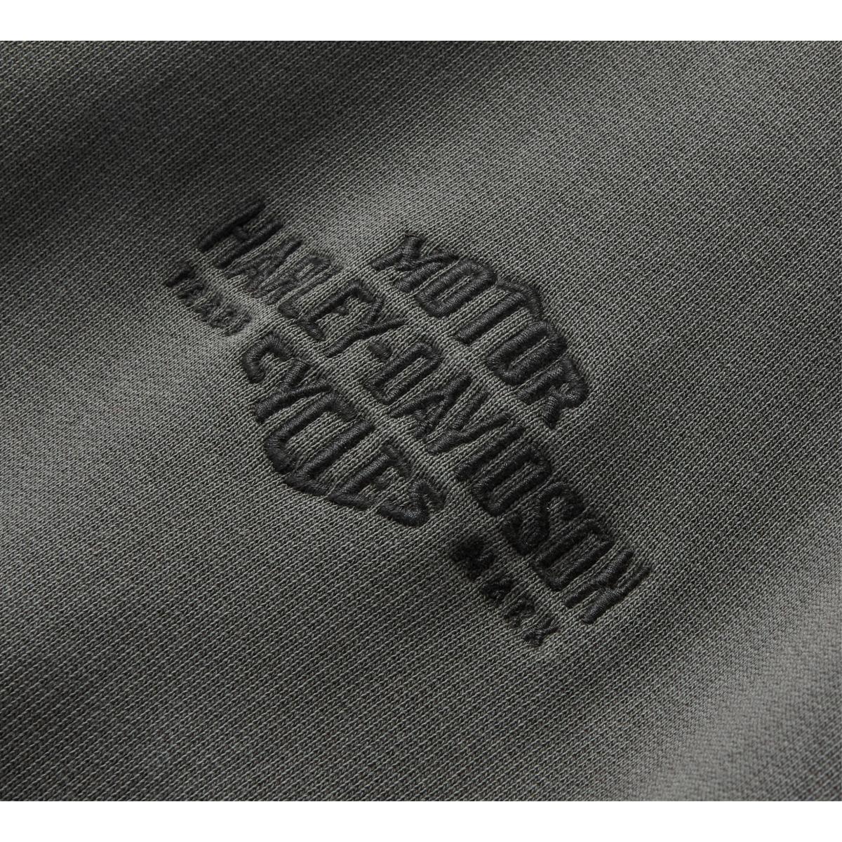 Reimagine timeless style and lasting comfort in the Harley-Davidson Originals Standard Issue Sweatshirt. This men’s pullover hoodie is built from a 510-gram cut of cotton French terry for exceptional durability that’s breathable and resists pilling. Its relaxed-fit silhouette is pigment dyed for a distinctive, well-worn look and feel. It features a double-layered overlap hood, a generous kangaroo pocket, and rib-knit trim to help keep its shape. Finished with exclusive H-D® Originals graphics in satin stitch embroidery that are inspired by our earliest Bar & Shield (circa 1910).