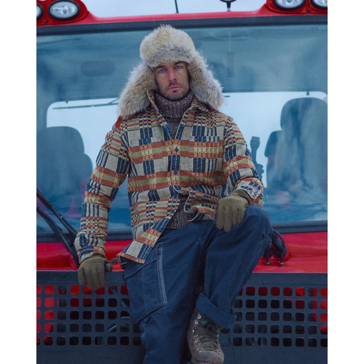 Made with heavyweight cotton jacquard cloth that is inspired by vintage blankets. Authentic runoff chain-stitched construction at the side seams, which is based on workshirts from the 1920s and ’30s. Washed to achieve tonal dimension.
