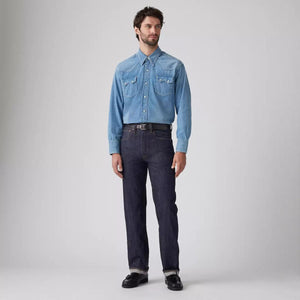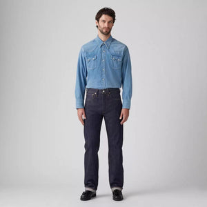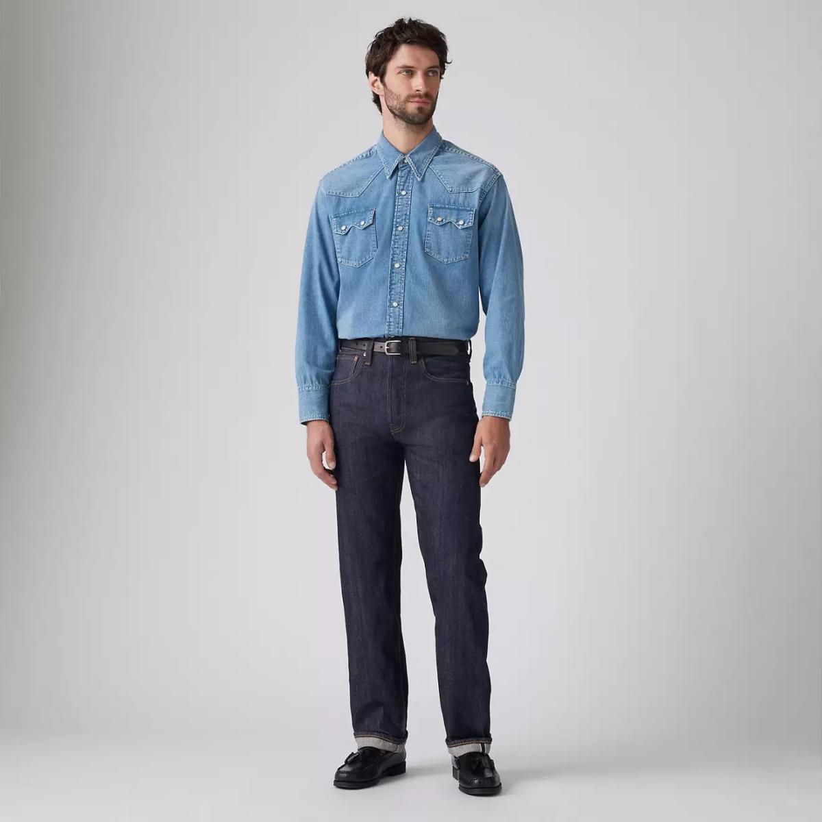 The year was 1947 and although the war had ended, the nation was much changed—and so were 501® Jeans. The end of rations allowed for the return of some familiar 501® features, like the watch pocket rivets. But it also ushered in some updates in response to the changing time and emerging middle class, like a modern, slimmer fit and the removal of extraneous details like the cinch and suspender buttons.