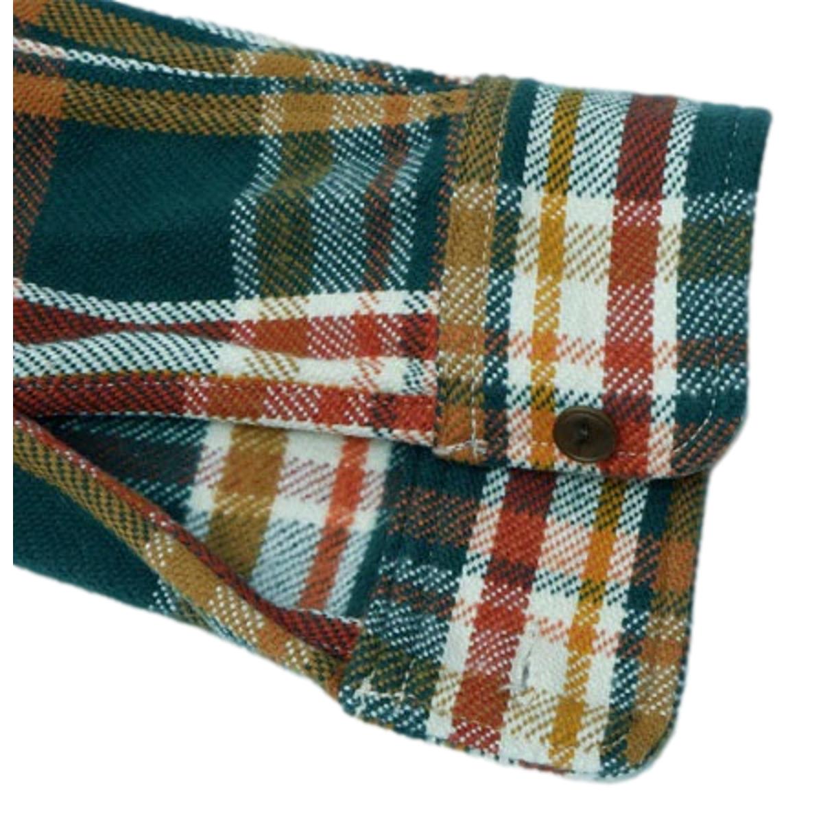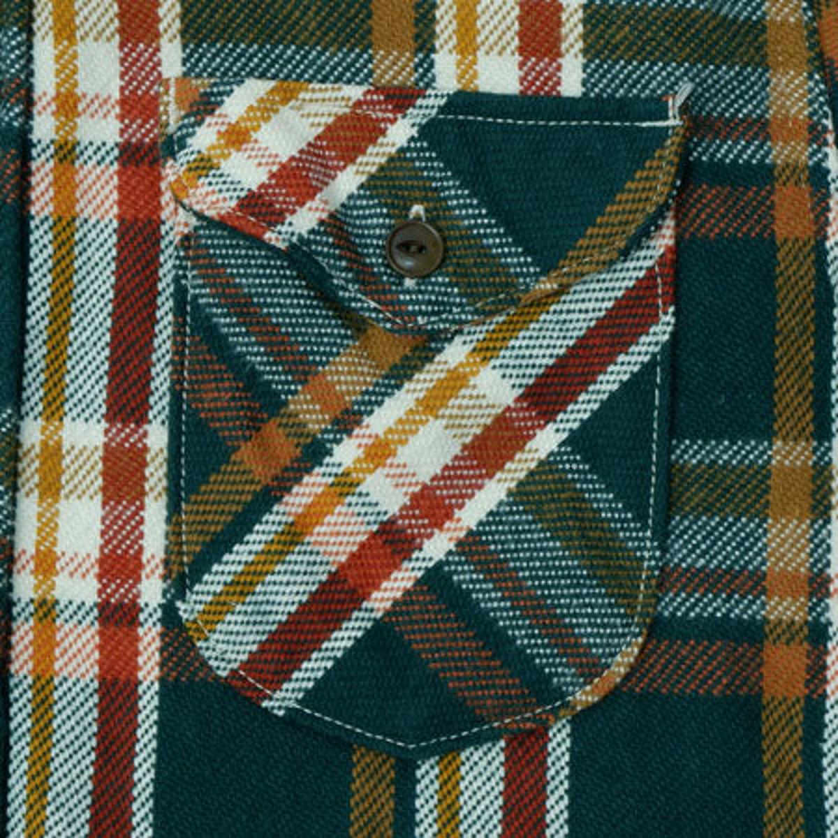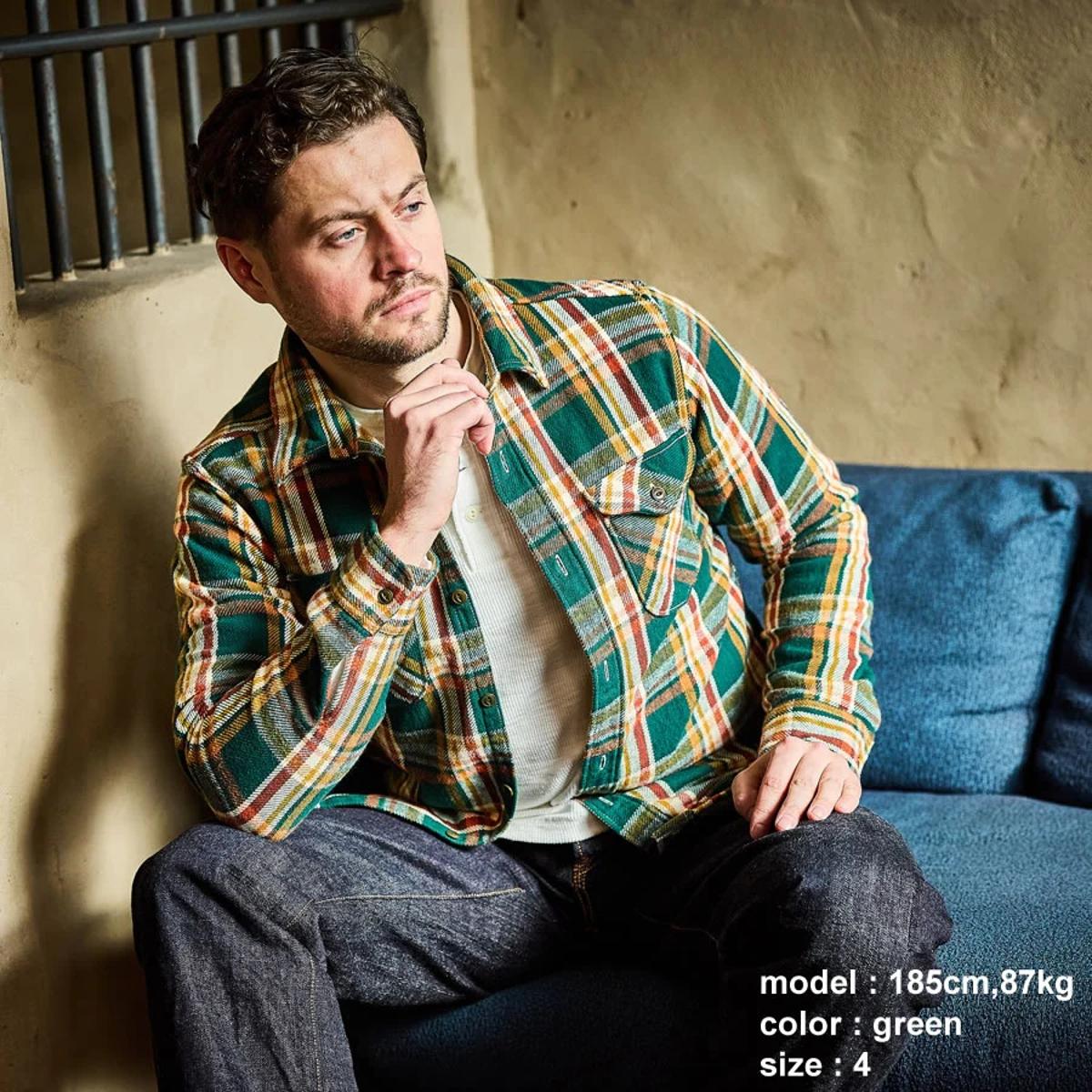 UES heavy flannel shirts are characterized by their thick fabric and the texture created by weaving on a power loom. The balance of warp and weft threads is good, and the fabric moves moderately, making it comfortable to wear. Please feel the texture of the fabric in your hands. The yarn-dyed fabric using reactive dyes has high color fastness, but you can enjoy the subtle color changes as you wear it. The back is lightly brushed, making it soft to the touch and increasing its heat retention. The white lines in the checkered color scheme create a contrast of light and dark. The checkered pattern is composed of thick lines as the base color and familiar accent colors, making it a basic and easy-to-wear shirt. 14.5 ounces 100% cotton & made in Japan