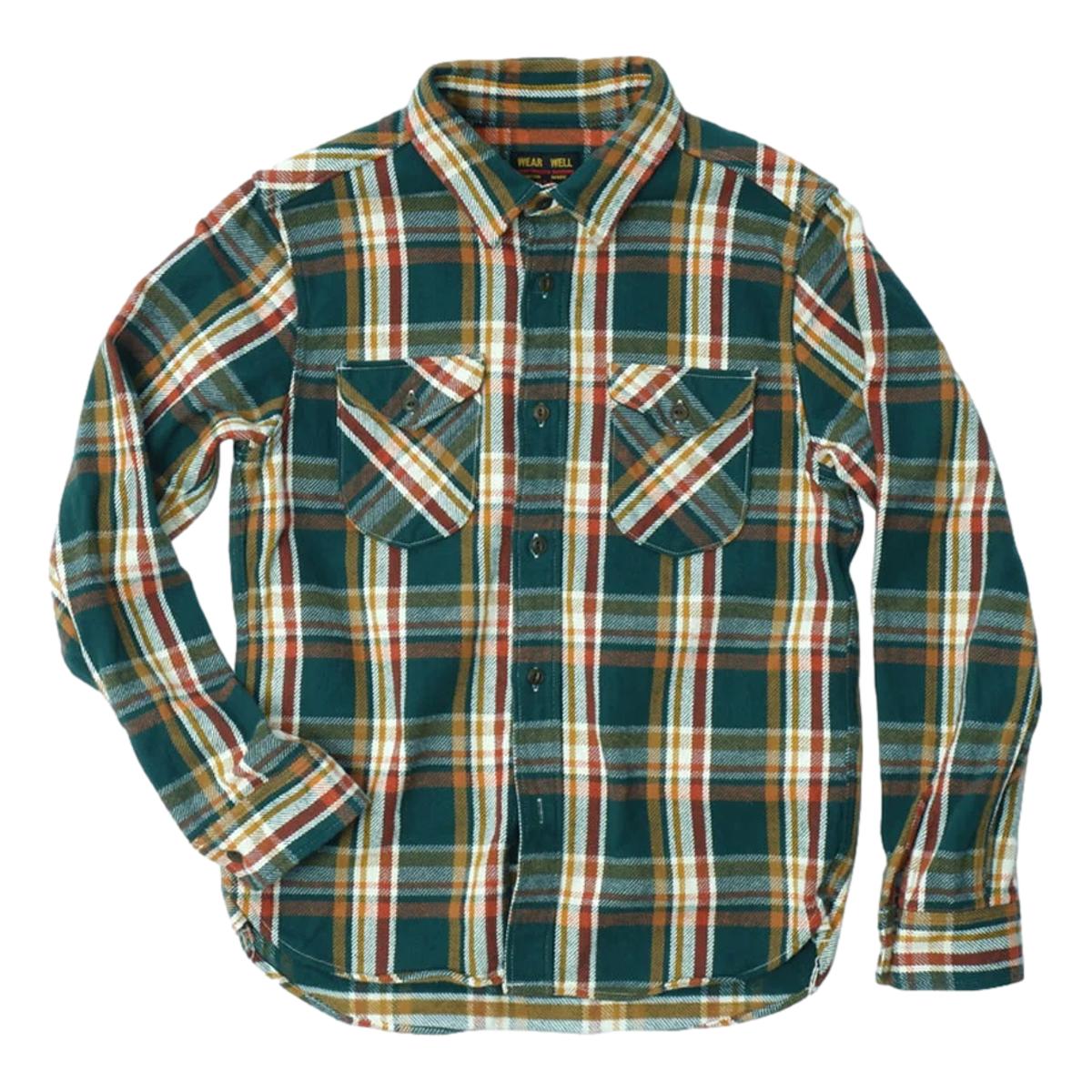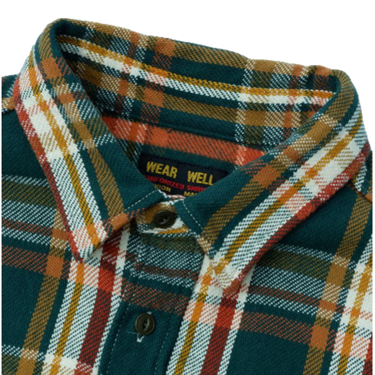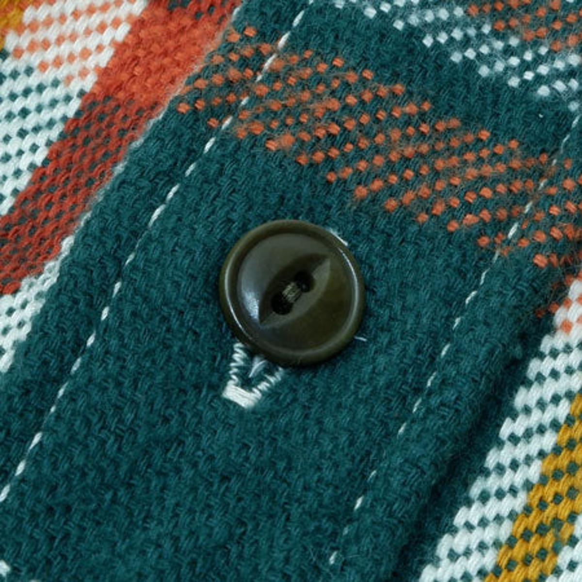 UES heavy flannel shirts are characterized by their thick fabric and the texture created by weaving on a power loom. The balance of warp and weft threads is good, and the fabric moves moderately, making it comfortable to wear. Please feel the texture of the fabric in your hands. The yarn-dyed fabric using reactive dyes has high color fastness, but you can enjoy the subtle color changes as you wear it. The back is lightly brushed, making it soft to the touch and increasing its heat retention. The white lines in the checkered color scheme create a contrast of light and dark. The checkered pattern is composed of thick lines as the base color and familiar accent colors, making it a basic and easy-to-wear shirt. 14.5 ounces 100% cotton & made in Japan