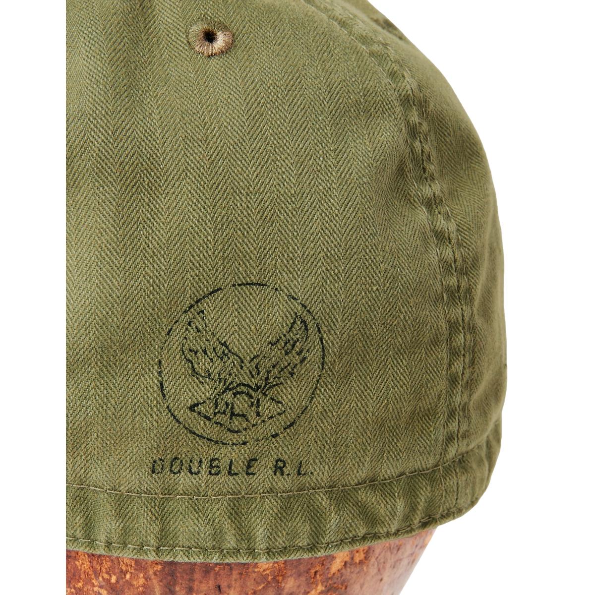 Vintage-inspired fitted cap made with olive herringbone twill. Khaki-hued underbill and sweatband. “Double R.L.” stamp at the back.