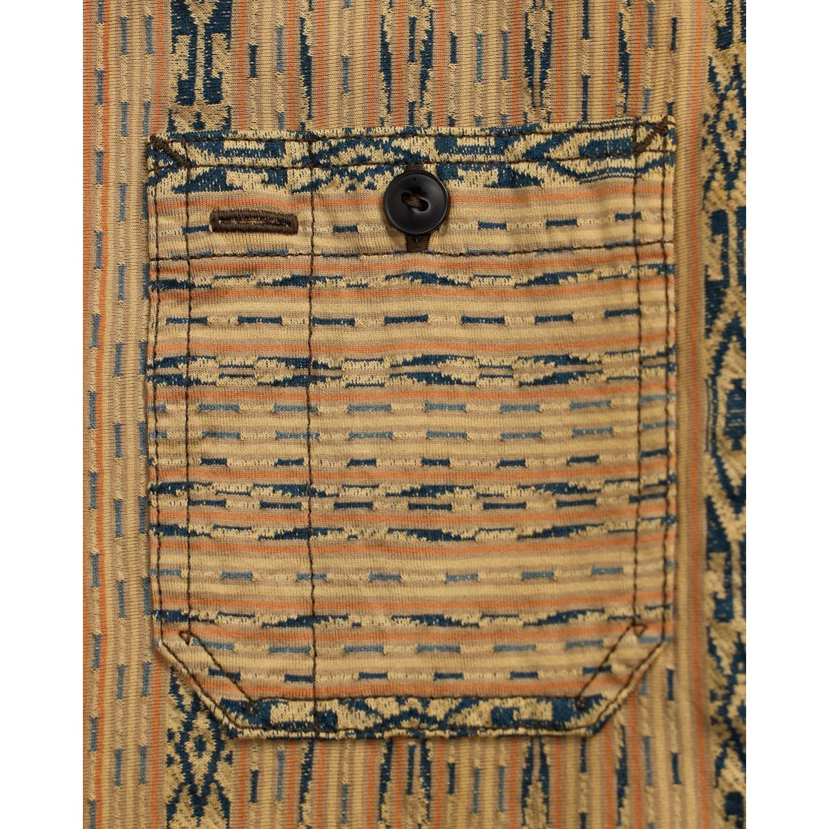 Classic workshirt model made with a cotton jacquard fabric. Pattern and color palette are inspired by a vintage swatch.