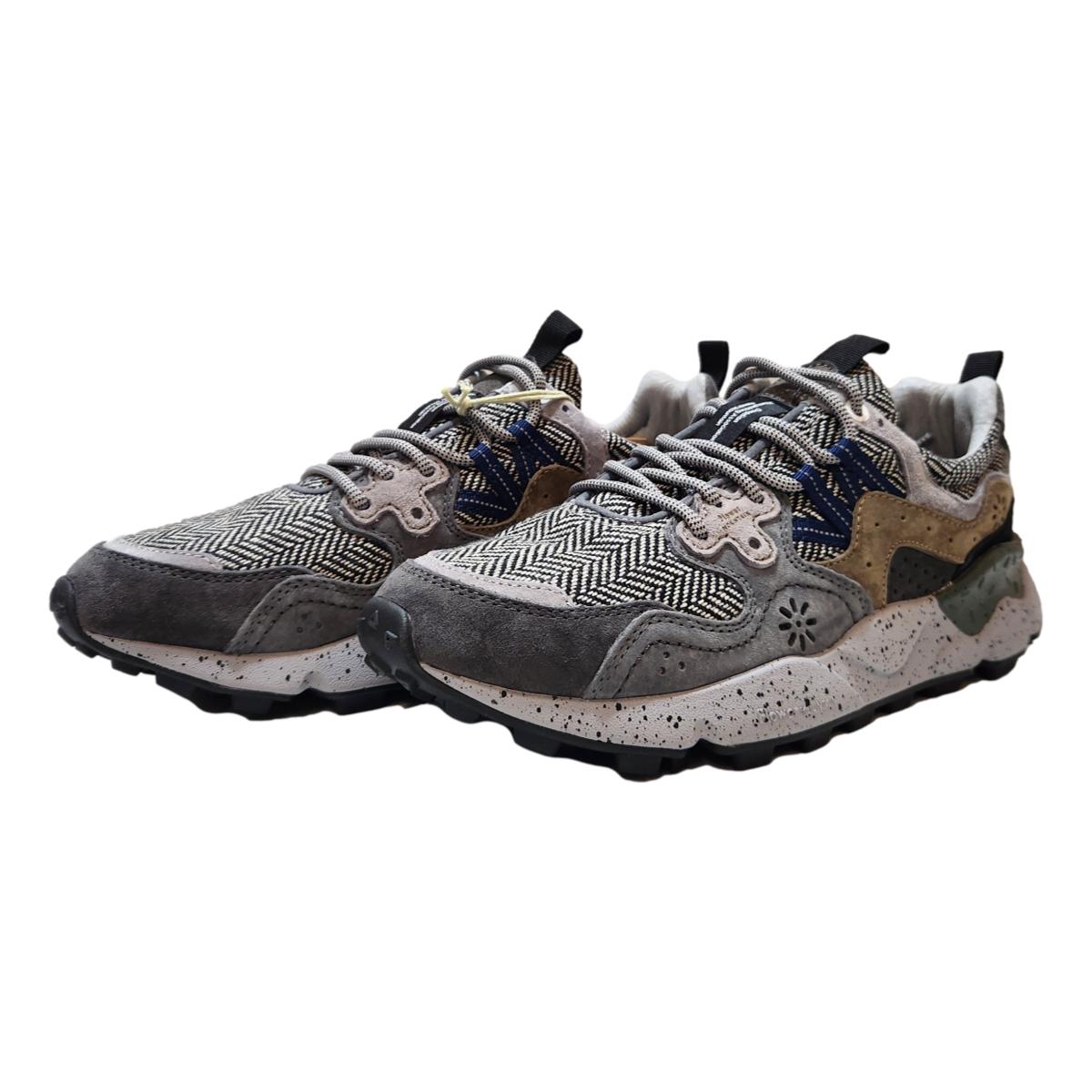 Low rise sneaker with a construction inspired by outdoor models: the technical fabric upper is completed by suede inserts, with side perforations and reinforced eyelets in leather and technical tape. The antibacterial cork internal insole offers all-day comfort, while the rubber sole features a shaped edge and serrated tread for impeccable grip.